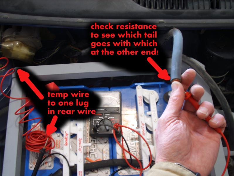 | Can't believe I did this... but I pulled the wire pair without marking which tail went with which head... DUH. Anyway, easy check is to run a wire from one end and check for continuity to see which tail goes which which head. ;) I could have pulled the pair back, marked and re-pulled, but continuity check seemed easier and quicker. |